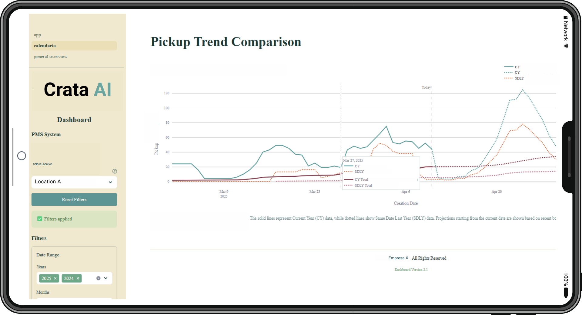 At Crata AI, we’ve implemented models that achieve 98% accuracy in predicting hotel demand, resulting in annual revenue gains worth hundreds of thousands of euros for clients now adjusting prices, availability, and staffing proactively.