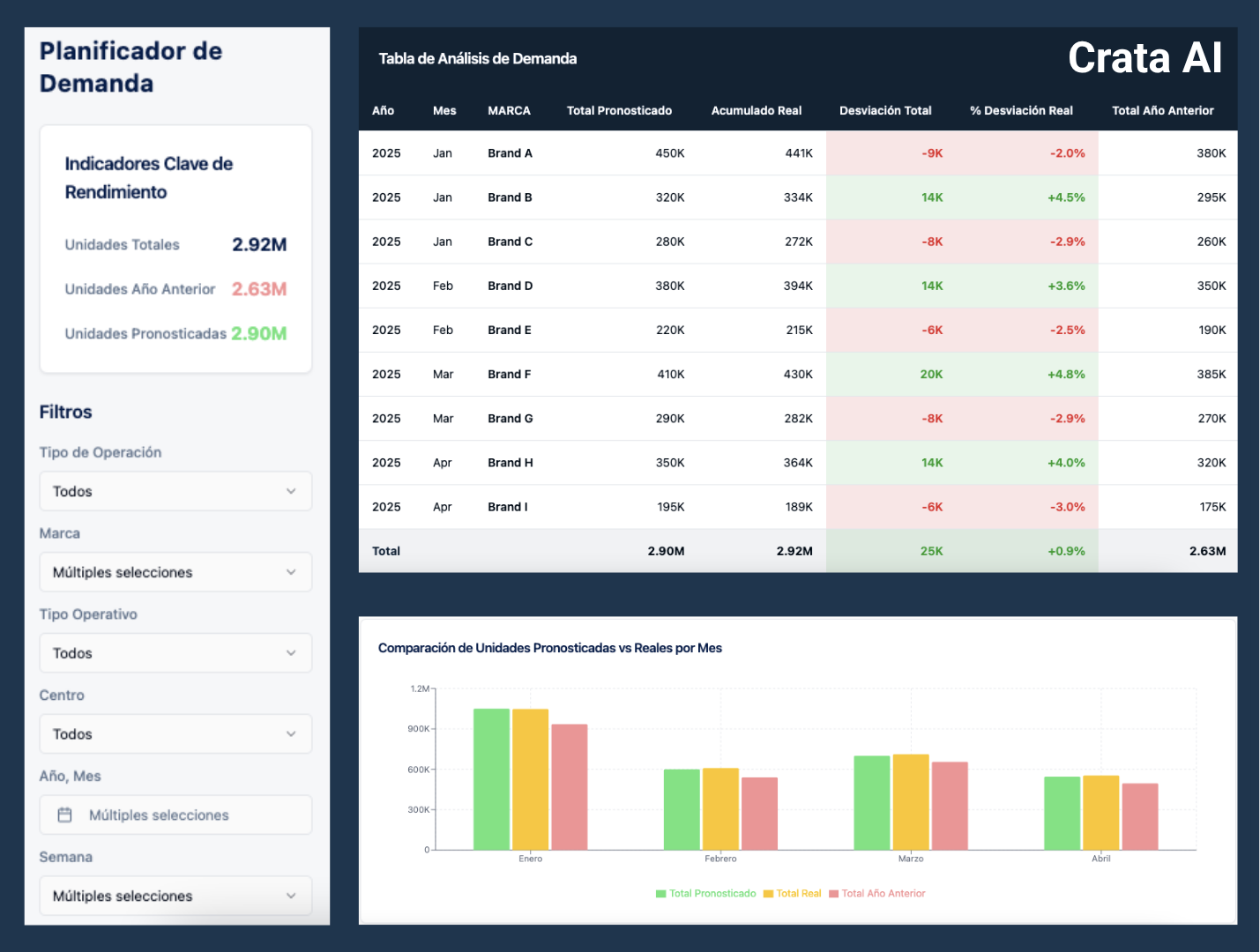 At Crata AI, implementing AI-powered demand forecasting algorithms has allowed our clients to cut operational costs by more than 20% and automate up to 85% of the manual workload related to forecasting, analysis, and planning.
